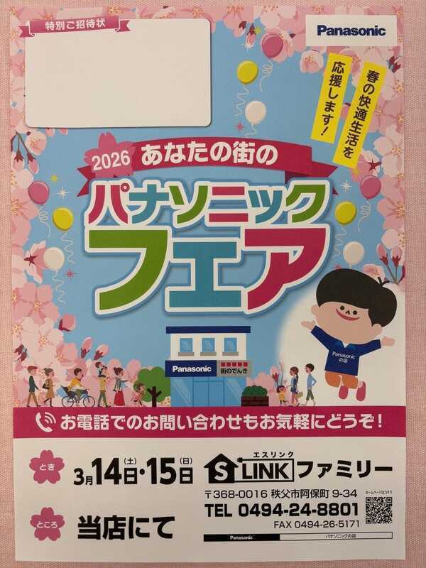 「春のパナソニックフェア」のご案内です。3月14日(土)・15日(日)の2日間、当店にて開催いたします。