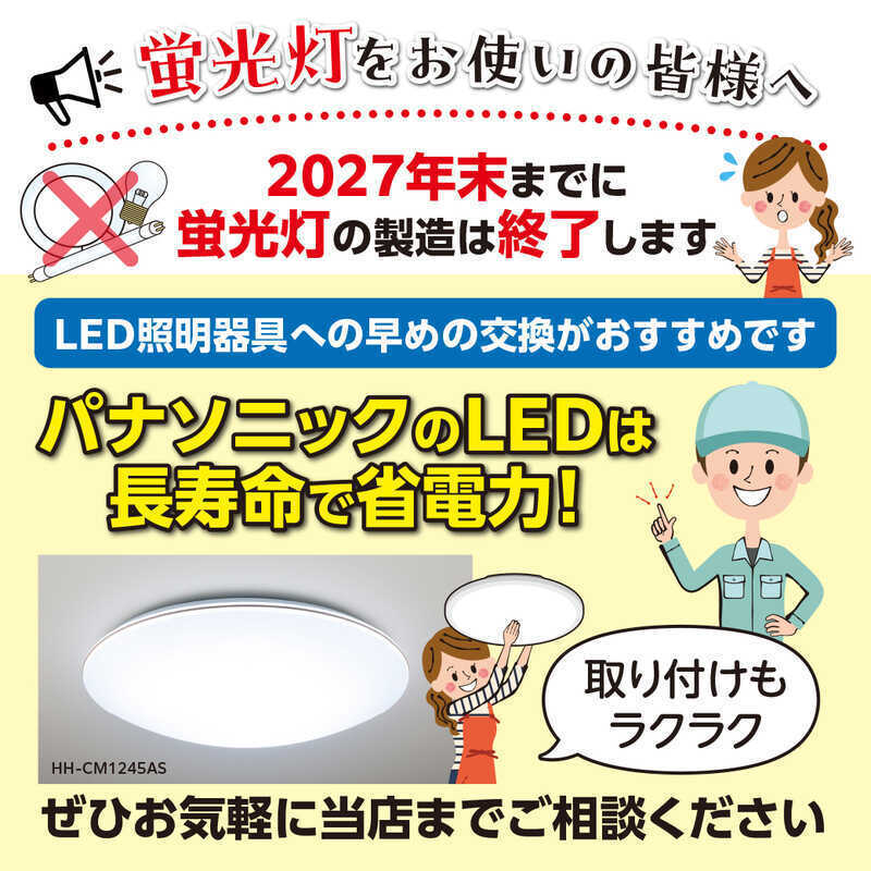 パナソニックの蛍光灯ランプは2027年9月末までに生産が終了します。