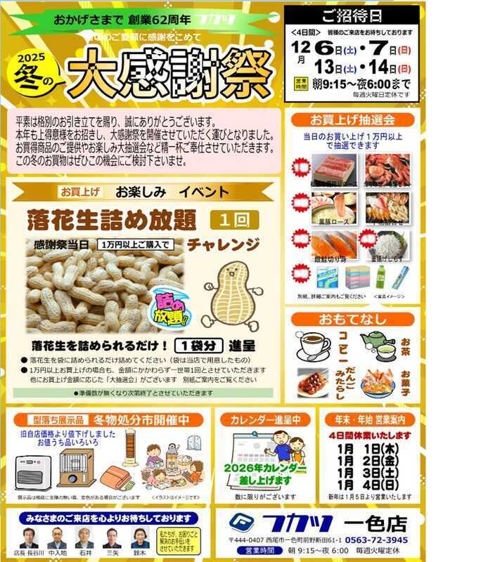 お買い得商品のご提供やお楽しみ大抽選会など精一杯ご奉仕させていただきます。