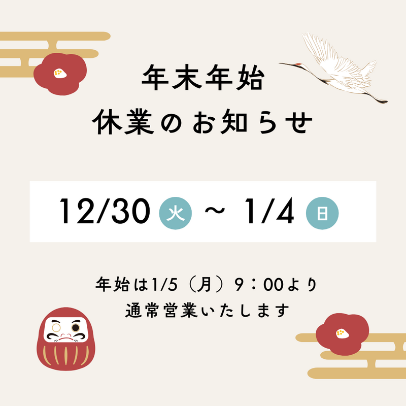 ※年末年始の営業につきましては12月30日(火)から休業予定となっております