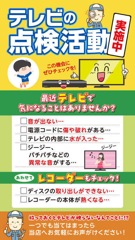 当店では、現在テレビ・レコーダーの点検活動を実施中です!
